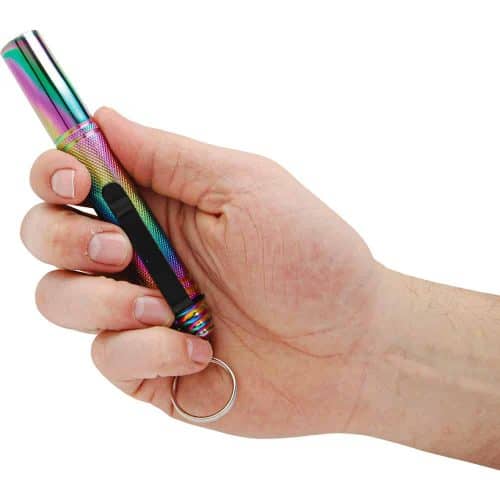 12 inch telescopic steel baton in your hand with a flick of the wrist! This expanding baton comes with a convenient belt clip and key ring for easy access. Simple, effective self-defense with extra reach. Never be caught unprepared! Closed length: 6.5″ Expanded length: 12 3⁄8″
